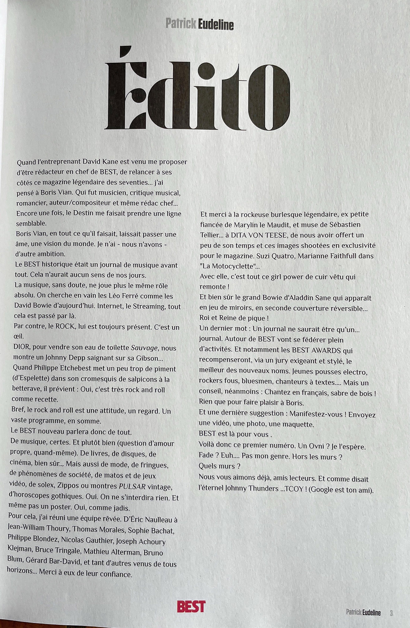 Rédacteur en chef : Ptrick Eudeline